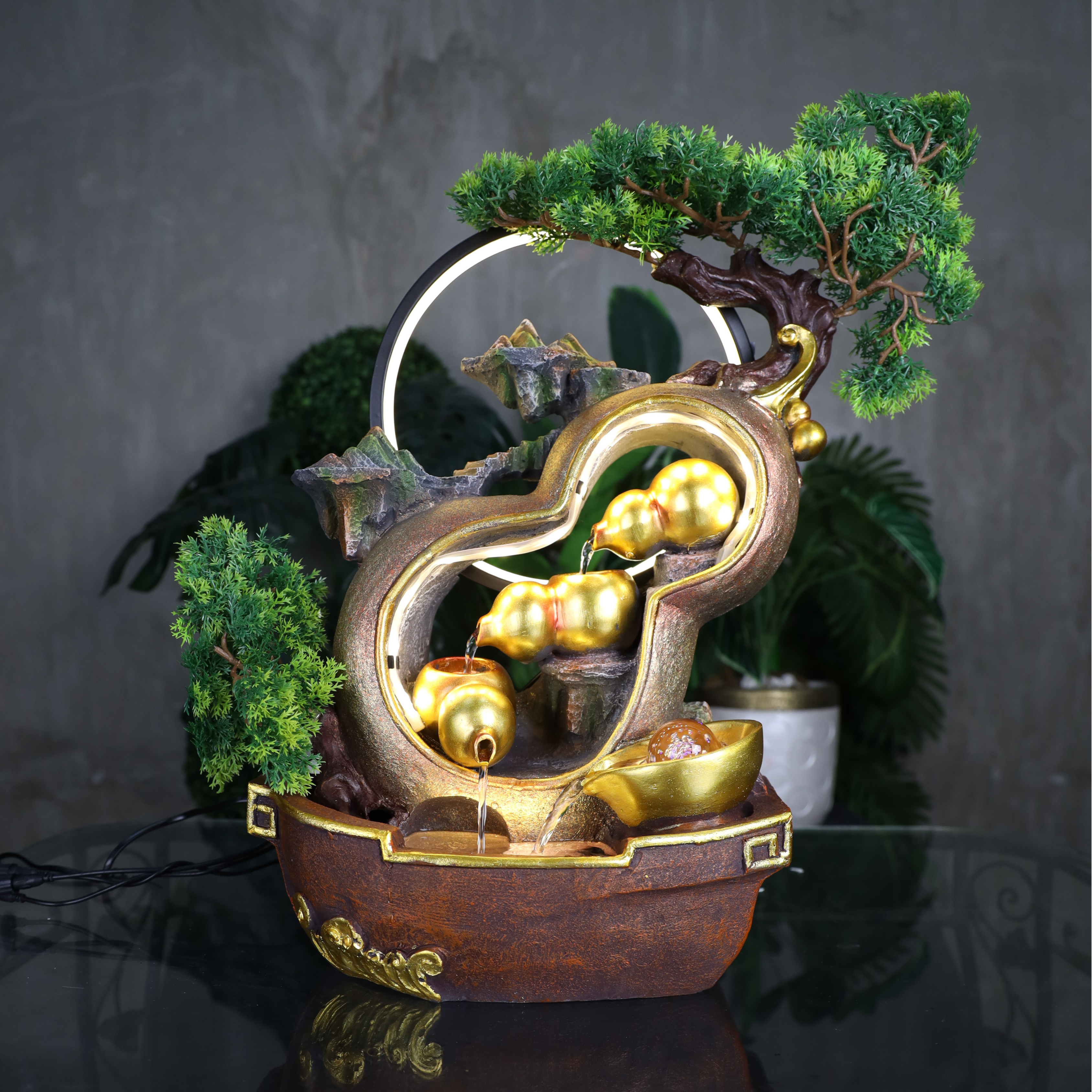 Illuminated Wu Lou Fountain of Health Energy 47cm